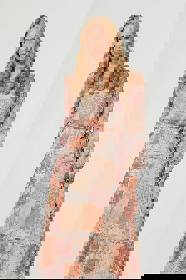 This maxi dress is perfect for special occasions and smart dress codes. It has a flattering a-line shape, with a tie waist and long puff sleeves. The semi sheer mesh layer will float beautifully with every step you take, making it perfect for weddings and other evening plans.