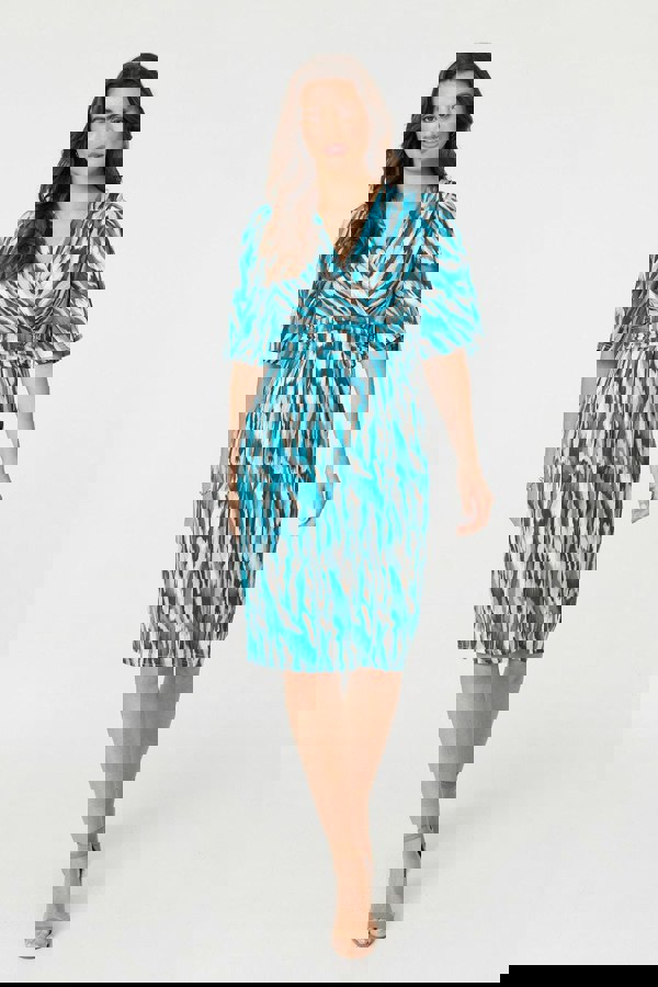 Get the elegant look of a wrap dress with minimal effort, thanks to this stylish knee length dress. It has angel 1/2 sleeves and a flattering v-neck, with a ruched waist panel that will accentuate your figure. For a formal event or a day at work, style with smart shoes - or on a casual day off, just add your favourite sandals.