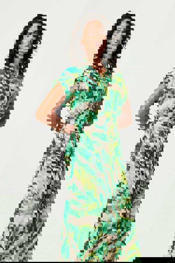 Dress for smart and smart-casual events in this beautiful midi dress. It has turn-up cap sleeves and a stylish tie waist, featuring a metal belt detail that you can adjust for the perfect fit. Complete the look with your favourite sandals or heels. It has an a-line midi skirt and front buttons that will flatter all figures.