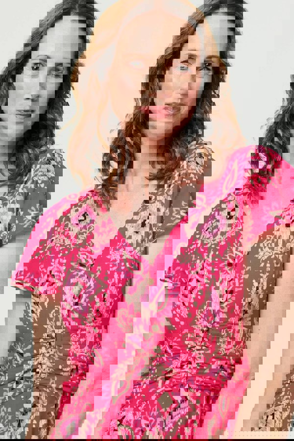 Dress for a wide range of dress codes in this beautiful maxi. It has a ruched waist with a tie back - perfect for giving your figure a tummy-flattering look. It has cap sleeves, a v-neck and hidden pockets. The maxi length skirt will pair elegantly with heels for special events, or trainers for laid-back plans.