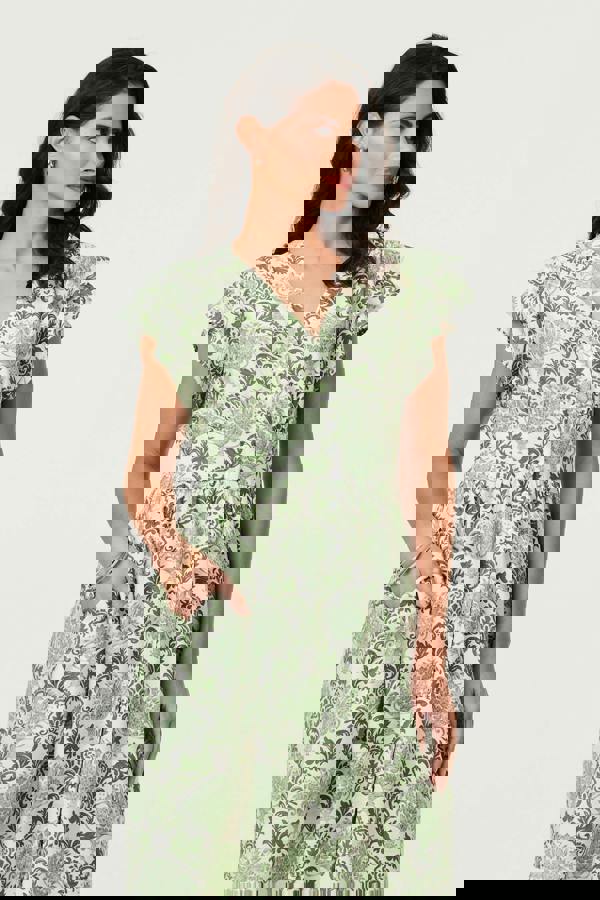 Made for warm-weather days, the Izabel London Printed Frill Sleeve Knee Length Dress brings a considered finish to everyday dressing. This knee-length style is cut with frilled cap sleeves and a V-neckline, finished with button detailing for a neat, feminine look.