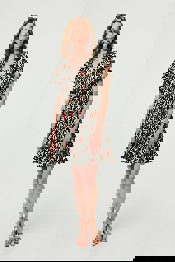 Keep it laid-back in this effortless short dress. It has frilled short sleeves and a relaxed shape. Adjust the drawstring empire waist for the perfect fit on your figure, and get a casual look thanks to the tiered skirt and v-neckline. This dress looks stylish with simple white trainers for a casual day out.