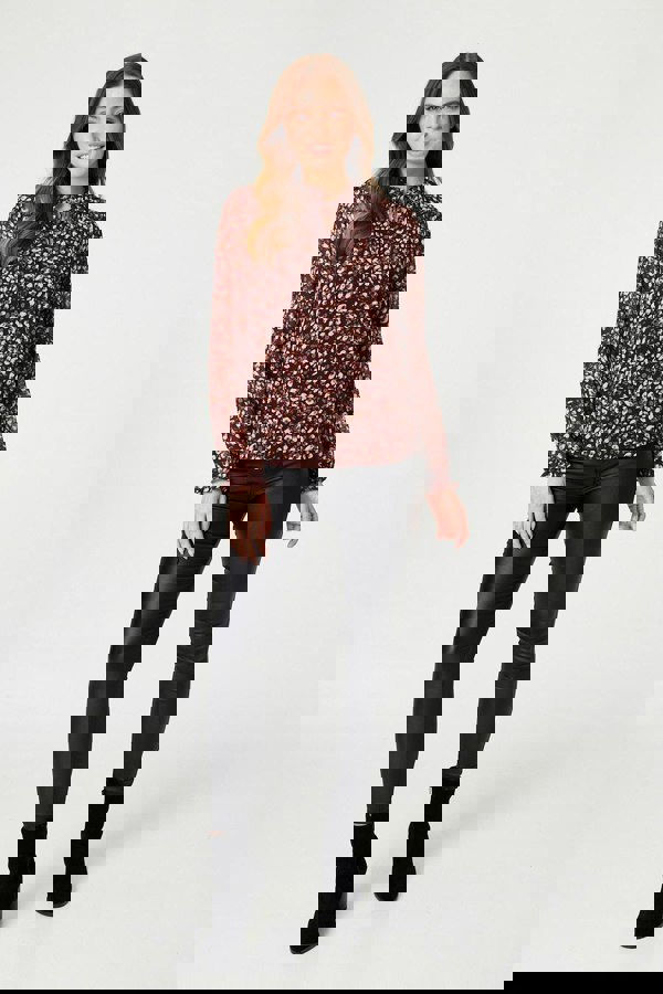 Add a versatile blouse to your wardrobe with this printed tie-neck style. It has a frilled high neck with a self-tie detail, long sleeves with frilled cuffs, a relaxed fit and a hip length hem. Pair with coated leggings and ankle boots to wear for a night out with the girls, or tuck into a neutral pencil skirt for an on-trend workwear look.