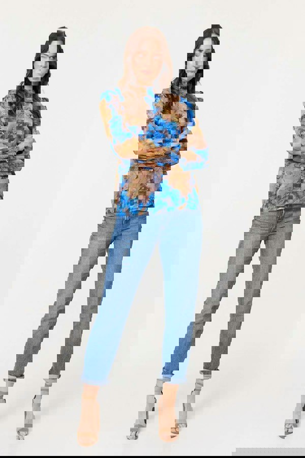 Whether you're going to work, dinner, or a formal event; do it in style with this printed blouse. It has an elegant shirred high neck and long puff sleeves with shirred details on the cuffs. It's made from lightweight semi-sheer material, with metallic stripe details that are sure to add some shimmer to any look.