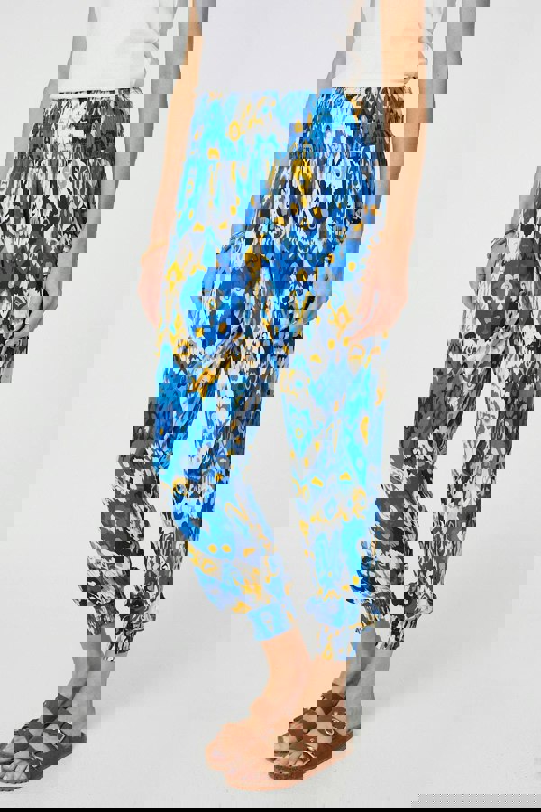 For ultimate comfort and breathability, choose these 100% viscose harem pants. They have a stretchy shirred waistband and cuffs, with a tapered relaxed fit and stylish tassel tie pockets. Wear them as loungewear for a relaxing day at home, or slip on your favourite heels and a fitted top for a smart-casual look.
