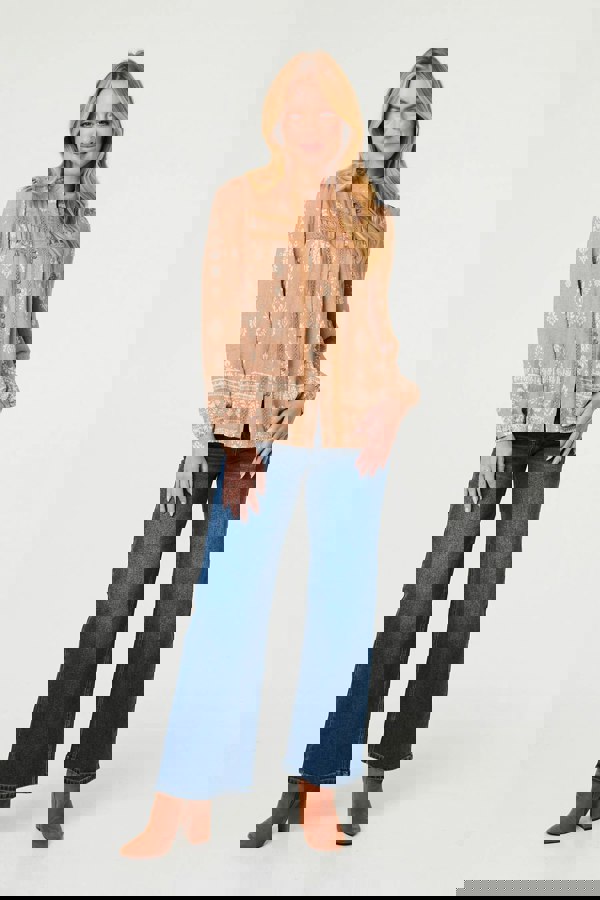 Feel feminine and elegant in this long sleeve blouse. It's finished with front buttons, lace trims and a flattering high neck. The relaxed hip length hem means this blouse is perfect for pairing with wide leg jeans for a smart-causal dress code.