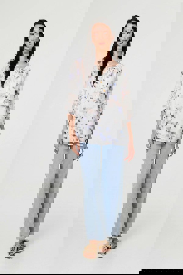 This elegant blouse has a Bardot shape that can be adjusted with the tassel tie front. Simply slide the drawstring to turn the round neckline into an off-the-shoulder fit. This blouse also has 3/4 sleeves, lace trims and a relaxed shape. Style with a denim skirt or jeans for effortless smart casual style.