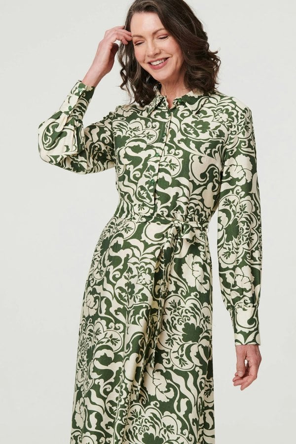You can't go wrong with a shirt dress. This one has long sleeves, a tie waist and a midi length hem. Fasten the buttons to the collar for a professional outfit, or undo a few and style this dress with heels for an evening out.