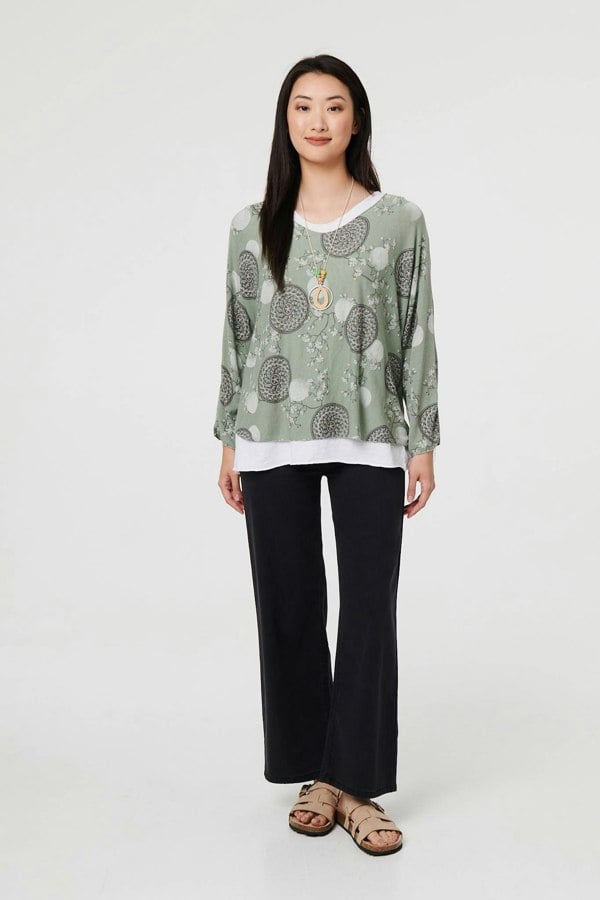 Stay comfy and stylish in this floral and mosaic print layered top. With a v-neck, a matching scarf, a printed open knit top layer and a cotton rich lining, sits below the hips. Style with light wash denim and trainers for a casual daytime look.