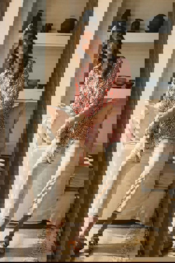 Go for a smart-casual look with this shirt. It has a collarless v-neck, 1/2 puff sleeves and a button-up front. The relaxed fit and curve hem will look stylish paired with jeans, skirts or trousers - whatever the occasion calls for. It's made from viscose blend to keep you comfortable, too.