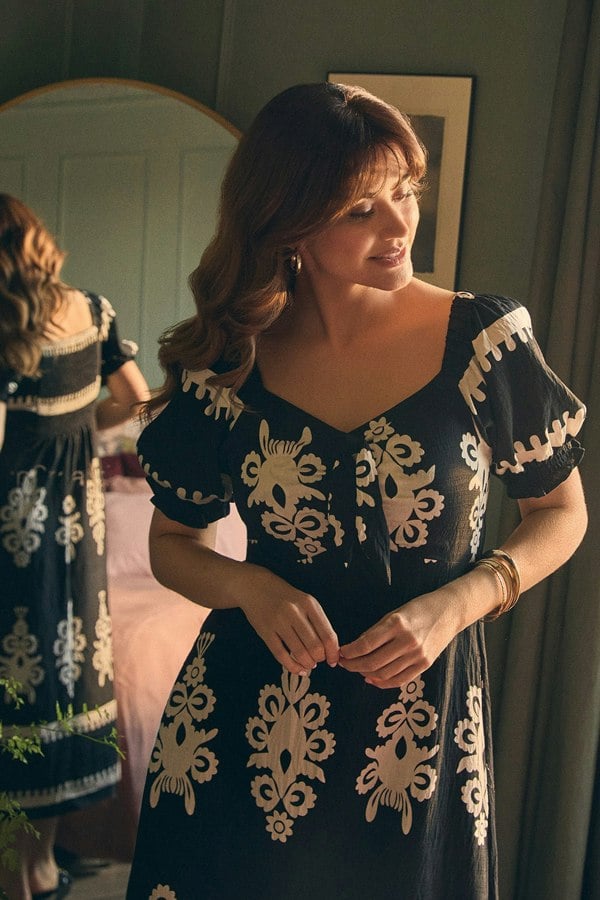 Feel confident and look fabulous in this elegant midi dress. It has a flattering a-line shape with a shirred back, short puff sleeves and a cute tie on the bust. The sweetheart neckline adds a touch of elegance so you can wear this midi dress to formal occasions as well as casual ones - just swap out your trainers for heels. It's made from comfortable viscose blend material.