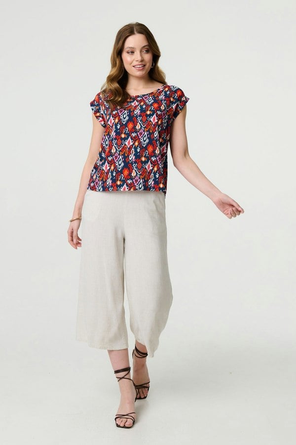 Get an effortlessly stylish look in this shell top. It has a round neck and cap sleeves, with a relaxed fit that's perfect for lazy days. Wear it with your favourite jeans and trainers.