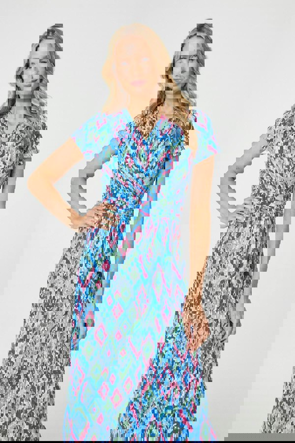 You can't go wrong with a classic midi dress. This one has a faux wrap front, as well as a ruched panel on the waist that will flatter your figure. Stay cool with short sleeves and a midi length hem. Pair this dress with heels for a formal event, or dress it down with white trainers.