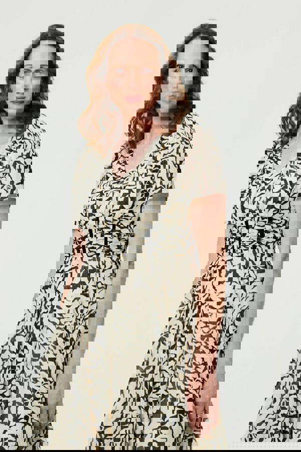 Dress to impress at your next event with this graceful midi dress. It has a tummy-flattering ruched bodice, giving the look of a corset across your waist for curves in all the right places. The a-line skirt flares into a curve hem, reaching midi length. It also has short puff sleeves and a v-neck. Style with strappy heels at a wedding or other special occasion.