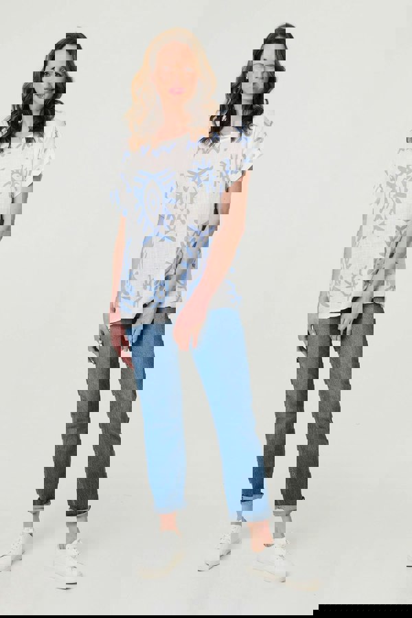 Get effortless style from this relaxed top. It's made from comfortable 100% cotton and has a loose-fitting shape. Stay cool on a hot day thanks to short sleeves, a round neck and a hip length hem. This top is perfect for pairing with shorts in warm weather, or wide leg trousers for a more covered look.