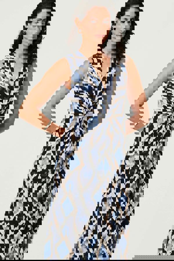 Izabel London brings a considered silhouette to occasion dressing with the Printed Sleeveless Twist Midi Dress. Cut to a midi length, it combines a twist-front shape with a V-neckline for a clean, defined finish. A sleeveless cut keeps the look streamlined, while the slim A-line shape adds gentle structure through the skirt.