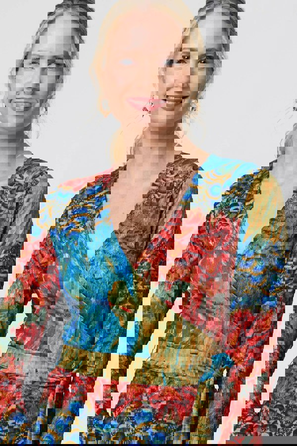 You'll feel smart and stylish in this fitted top. It has a flattering wrap fit that ties at the waist to accentuate your figure no matter your body type. It also has long sleeves and a hip length hem. Wear this sleek top with tailored trousers to your next formal event; it's perfect for a wedding, party or dinner out.