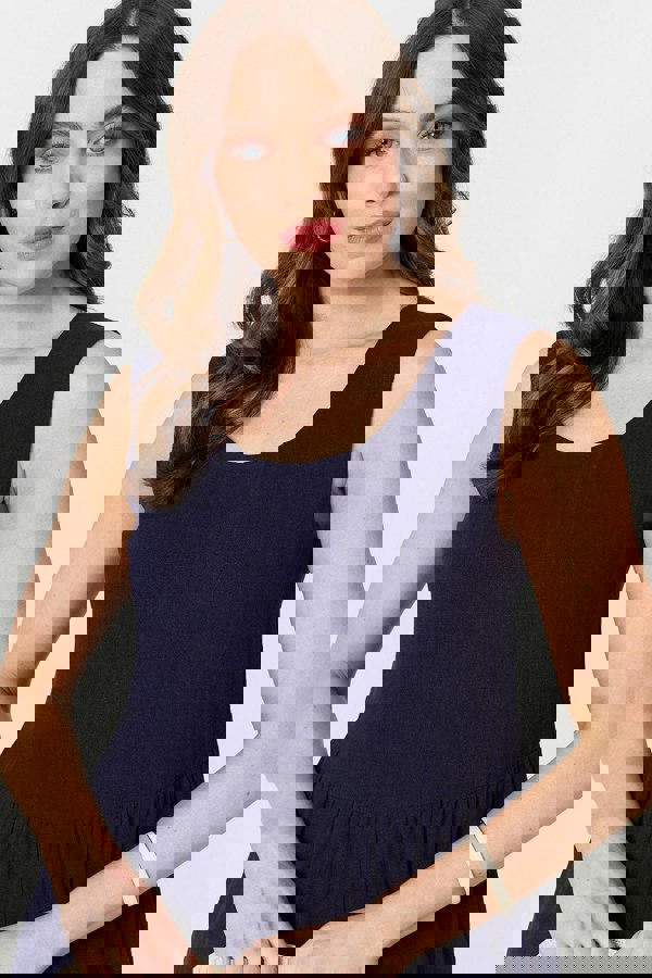 Look as laid-back as you feel wearing this comfortable jumpsuit. It's sleeveless with a scoop neck and a relaxed fit, and it has a shirred waist for a tummy-flattering look on all figures. It also has a unique v-back that will add a stylish finishing touch to your outfit. The wide legs are cropped and will look elegant paired with heels for a special occasion, or with trainers for a casual day out.
