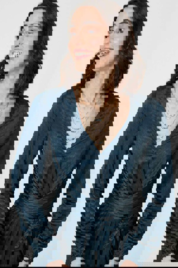 This is the perfect dress for your next wedding, formal dinner or other special occasion. It has an elegant v-neck and long sleeves, with a tie up waist that will flatter all figures. The midi length hem and ruched detail on the front create a timeless, classic look that's perfect for special events and black tie dress codes.
