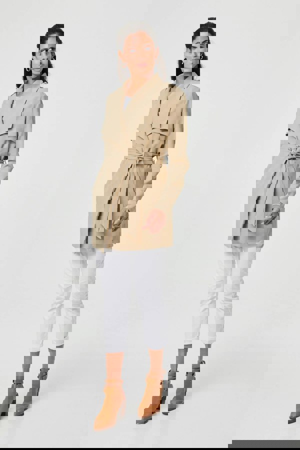 Add a chic layering coat to your collection with this trench coat. With a v-neck, oversized lapels, pockets and a self-tie belt fastening. Layer over a lightweight knit, jeans and heeled ankle boots for the ultimate stylish transitional daytime look.