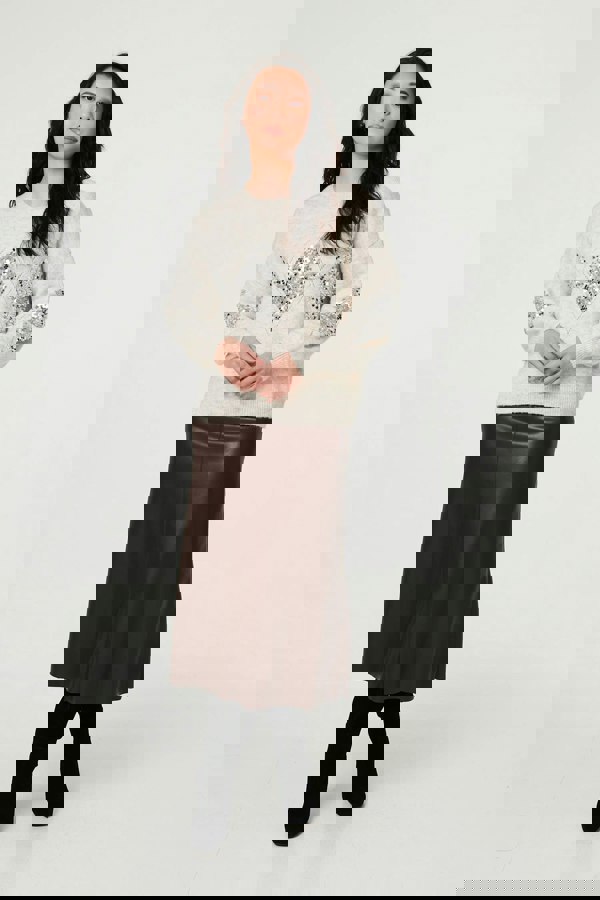 Bring warmth and shimmer to your wardrobe with this sparkly jumper. It has a beautiful sequin design on the front and on the sleeves, which also feature drop shoulders. It has a relaxed and comfortable fit, meaning it's perfect for festive parties and evening out.