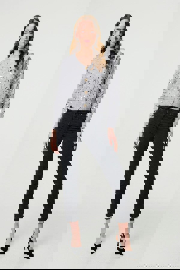 This shimmery cardigan is perfect for layering over any look. It has sparkly sequin embellishments, front buttons and long sleeves. The cropped fit will flatter your figure, and it's made from comfortable viscose blend materials.