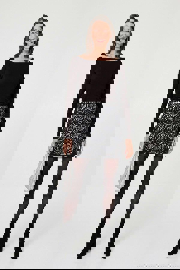 This sparkly mini skirt is a must-have for special occasions and parties this season. It's covered in sequin embellishments and has a semi sheer mesh layer. Wear it with black tights and a simple blouse to let those sequins shine.