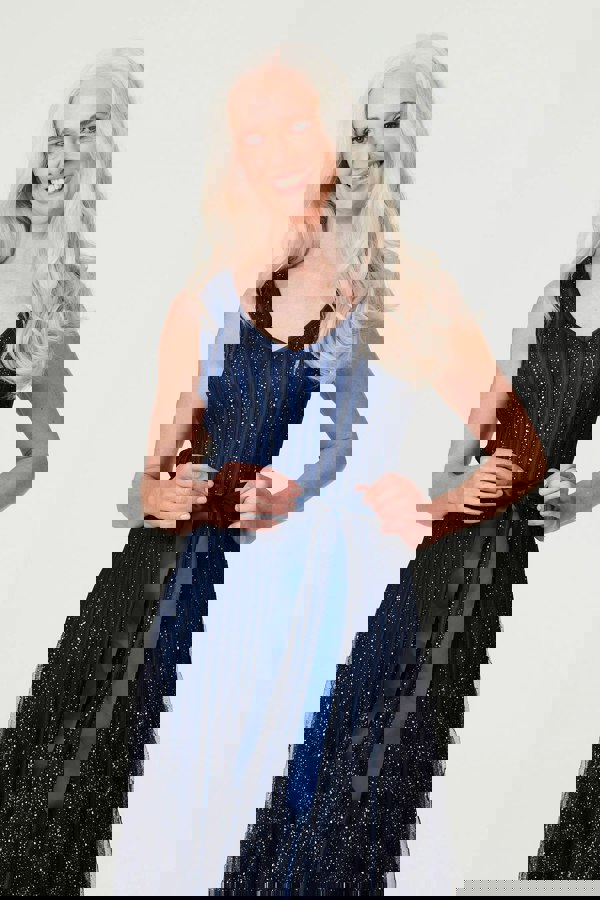 In need of an elegant prom dress? Try this standout sequin-embellished skater style. It has a v-neck with a sleeveless fit, a detachable self-tie ribbon belt, a fit & flare silhouette and a midi length hem. Made in a semi-sheer panelled mesh fabric, it's the perfect glitzy look to have you turning heads at any evening occasion.