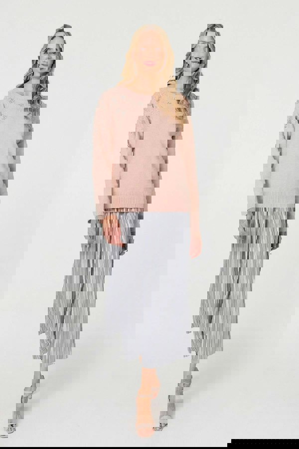 This cosy jumper is finished with sparkly details to add some extra shimmer to your look. It has a relaxed fit, a round neck and a thigh length hem. Wear it with a matching metallic skirt for your next special occasion this season.