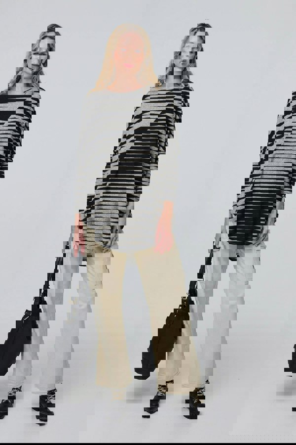 Go for the oversized look in this comfortable jersey top. It has a relaxed fit with curved thigh length hem, featuring flattering side splits. It also has long sleeves, a round neck and an asymmetric cut.