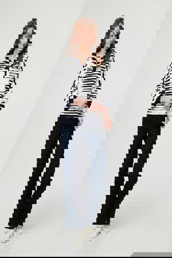 When it comes to looking effortlessly elegant, this top is perfect. It has an oversized fit; complete with 3/4 sleeves and relaxed drop shoulders. The v-neck features button details and the hems have a contrast trim.