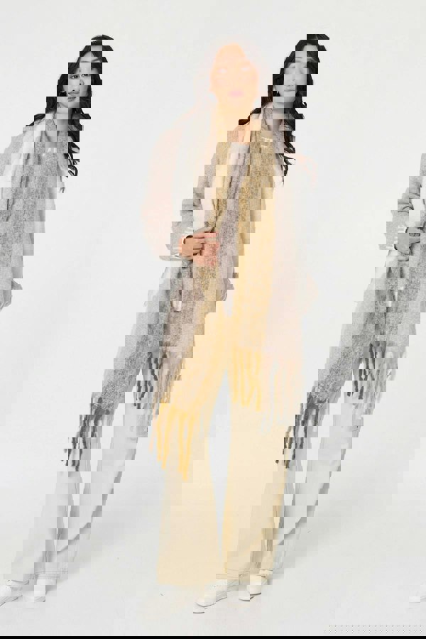 Keep your cool-weather look on trend in this stylish oversized scarf, featuring a fringed hem. It also has a large rectangular shape so you can wrap it around your shoulders for ultimate cosiness this season.