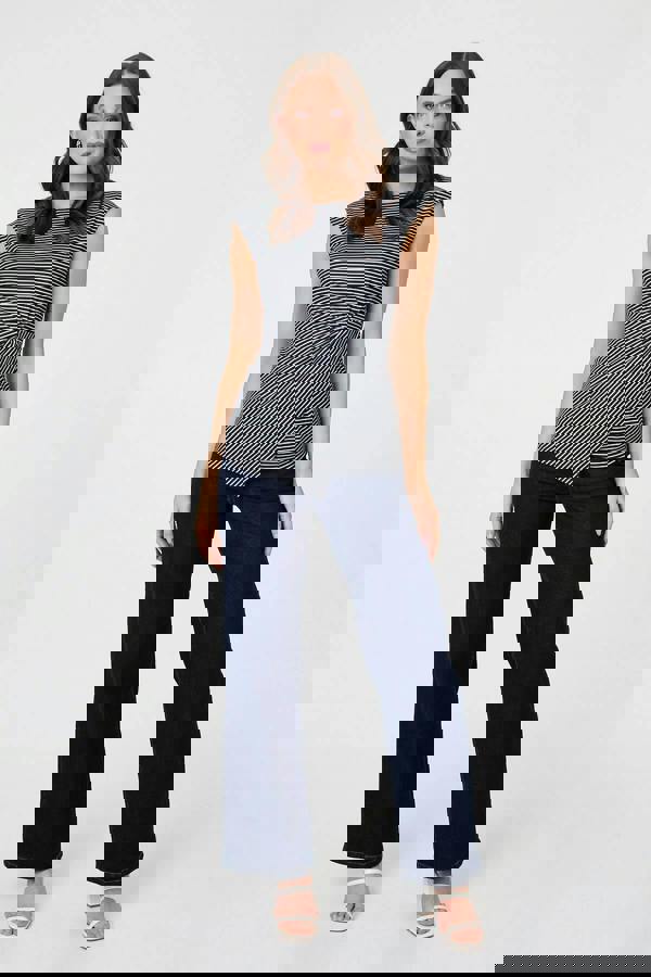 This flattering top will become a new favourite in your wardrobe. It has a slim fitted shape that ruches at the waist for a slimming, asymmetric look. The cap sleeves and hip length hem make this top perfect for warm days. Wear it with fitted jeans for a smart casual occasion.