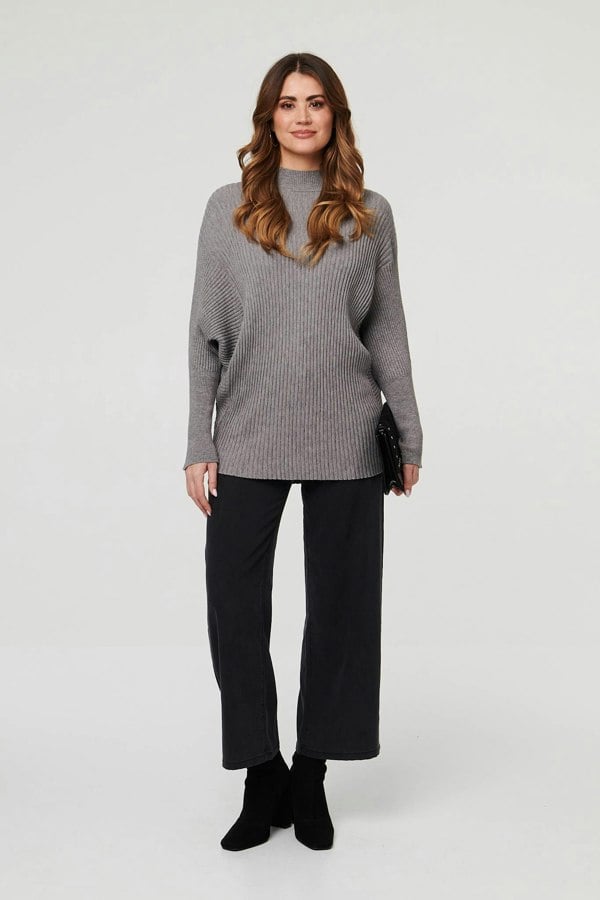 Stay cosy in style in this textured jumper. It has a relaxed fit with flattering batwing sleeves, a high neck and a longline thigh length shape. Wear this jumper with your favourite jeans for a smart casual outfit that's as warm as it is stylish.