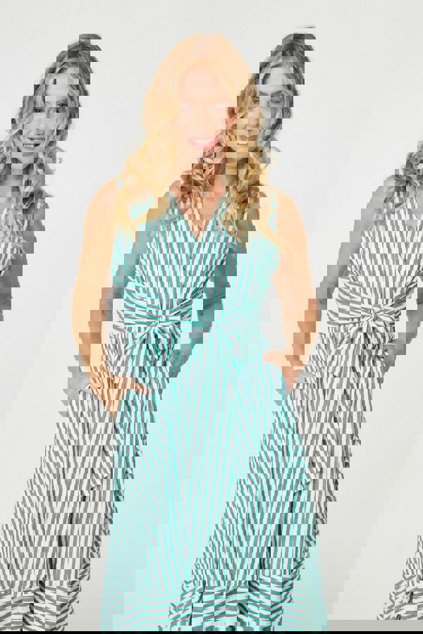 Say hello to your new favourite summer dress! This midi has a vintage-inspired tie around the waist, with a classic v-neck and an a-line fit. The skirt is tiered for that effortlessly chic effect. It's sleeveless and made from 100% breathable cotton to keep you cool in the summer too. Dress it up for a wedding with heels and your favourite clutch bag.