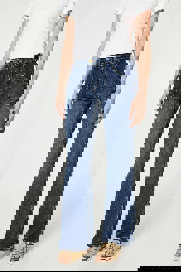 These flattering jeans have a studded trim along the side stitching, making them the perfect smart-casual choice for an evening out. They have a high waist, a flared fit and handy pockets. Wear them with your favourite top for your next night out.
