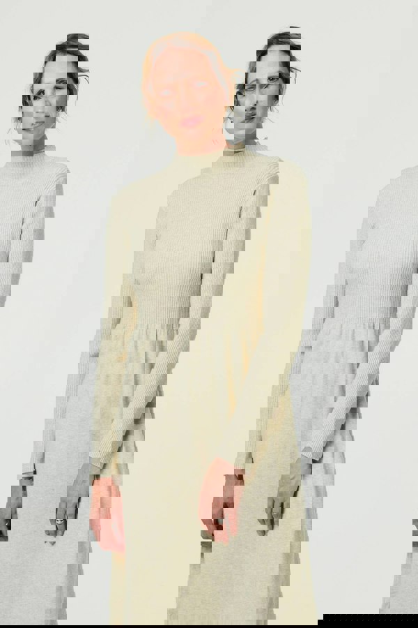 For a comfortable and classic look, this midi dress is perfect. It's made from a soft and warm textured material, with a high neck and long sleeves. The ruched waist and a-line skirt will have a tummy-flattering effect on your figure. Style this dress with trainers on a relaxed day out, or tights for an extra layer of warmth.