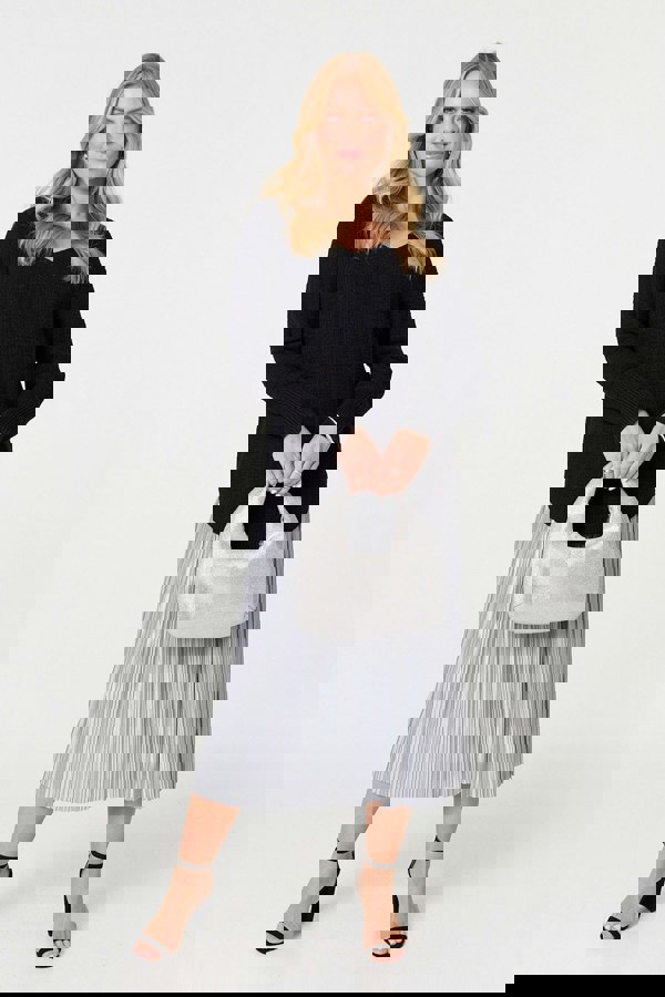 All wardrobes need a v-neck jumper just like this one. It has long sleeves with drop shoulders, as well as a v-neck and a relaxed fit. The curved hem will layer over jeans, skirts or trousers for a laid-back and cosy look. It's also made from a viscose blend that will keep you warm even on a chilly day.