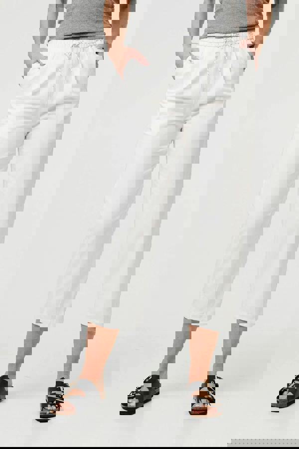 These comfy trousers are a must-have for your wardrobe this season. They have a relaxed wide leg fit, with a high waist that can be adjusted using the drawstring tie on the front. They are also cropped and feature pocket details.