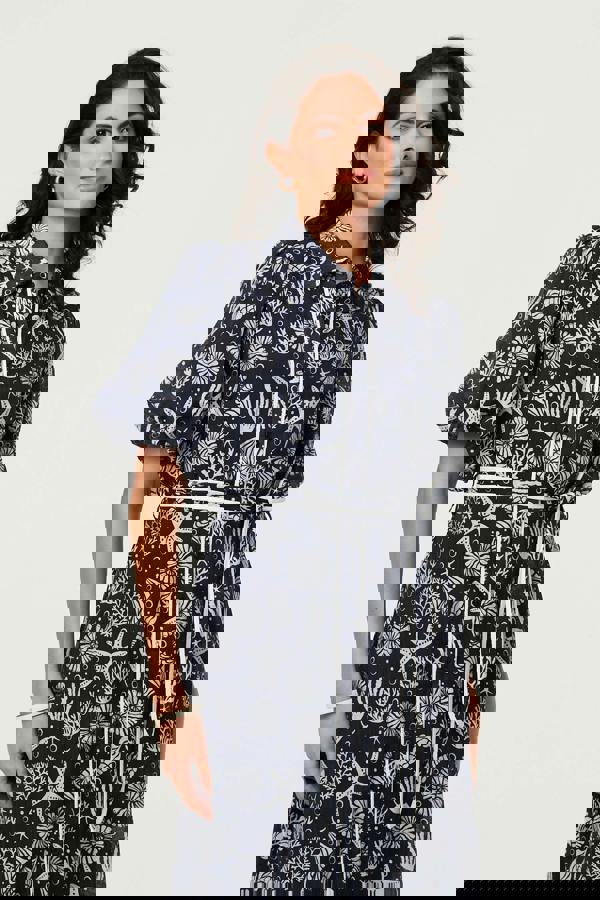 Izabel London brings a shirt dress silhouette to the Tropical Print Puff Sleeve Midi Dress, finished with a collared neckline and a midi-length hem. Statement half puff sleeves add shape through the upper arm, balancing the clean lines of the button-through front.