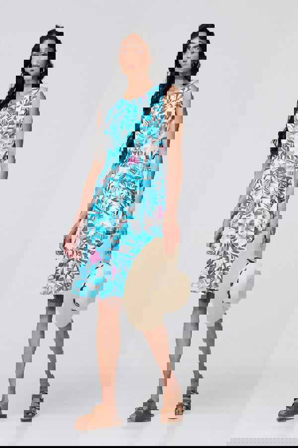Make the most of sunny days with this knee length dress. It's sleeveless and has a comfortable round neck, as well as elegant pleats that create a tummy-flattering effect. Add a sun hat and sandals or dress up for an evening out with heels and your favourite jewellery.
