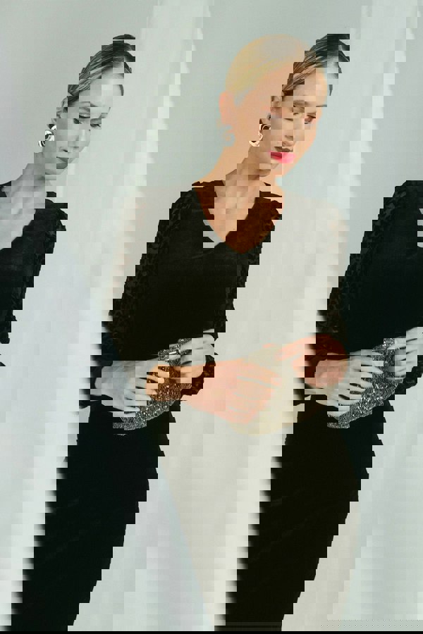 The body-skimming silhouette, v-neckline, and knee-length hem create a flattering, classic shape that works beautifully for parties, dinners, and formal events. Simply add heels and statement jewellery for a polished occasion look.