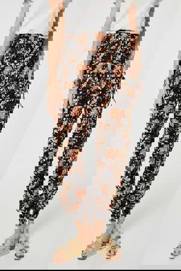 Every closet needs a pair of printed trousers like this vintage floral pair. With a high waist, a stretchy smocked waistband, pockets, a tapered fit and soft smocked ankle cuffs. Style with a t-shirt and sandals for a casual daytime look or pair with a silky cami top and heels for a smart-casual outfit.