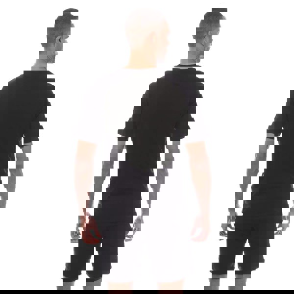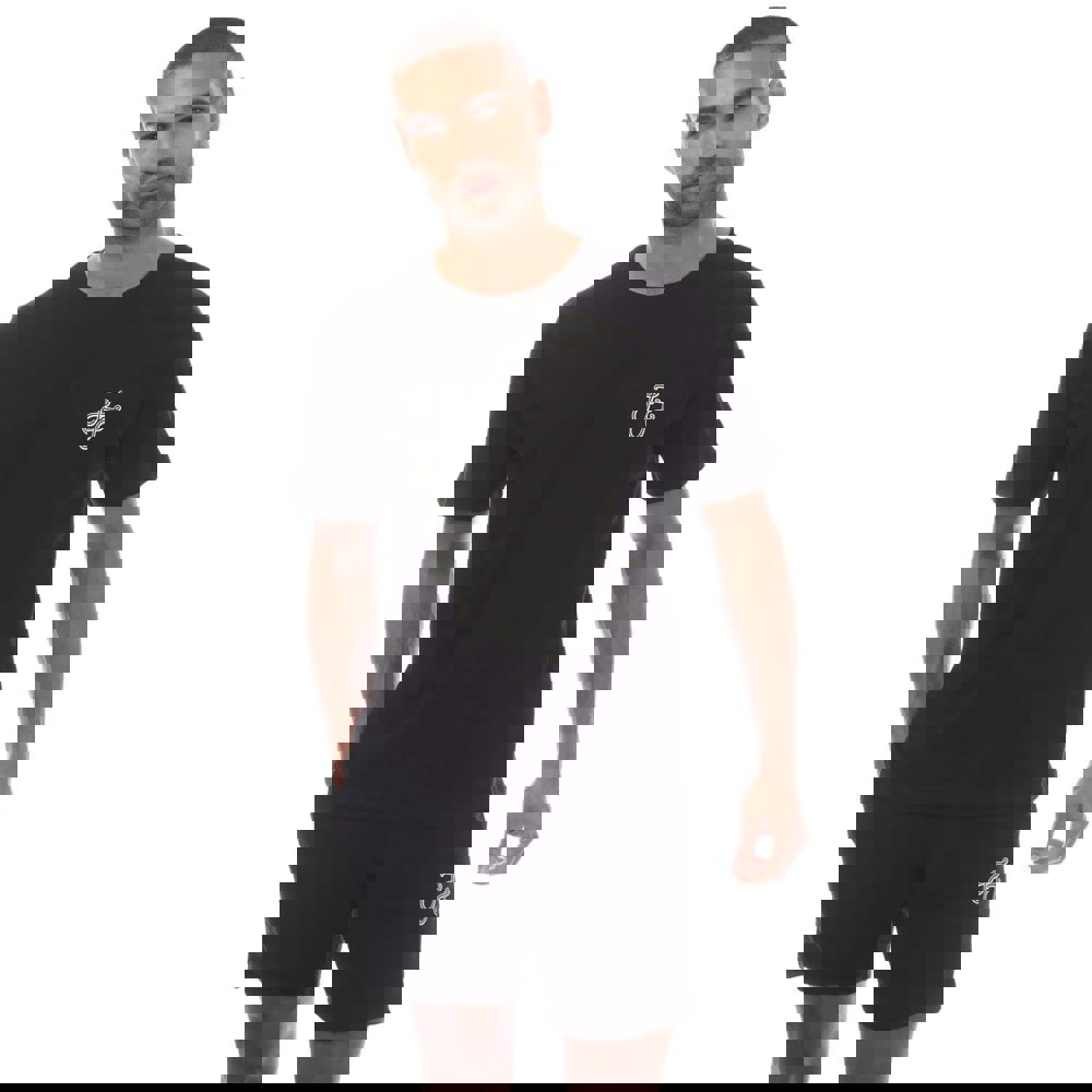 This Jack and Jones men’s set includes a tag T-shirt and matching shorts in black. Made from a cotton and polyester blend, it offers a clean, coordinated look for casual wear. The T-shirt is finished with a crew neck, short sleeves and a printed logo design.