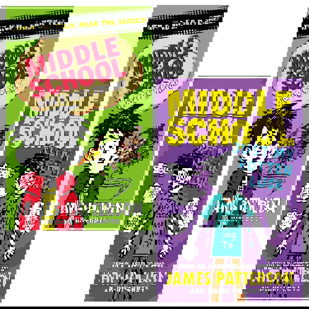 James Patterson Middle School Series 2 Books Set brings together two instalments featuring Rafe Khatchadorian and his latest middle school challenges. This set includes Dog's Best Friend and Just My Rotten Luck, following Rafe as he tries to navigate school life while dealing with unexpected setbacks and new plans.