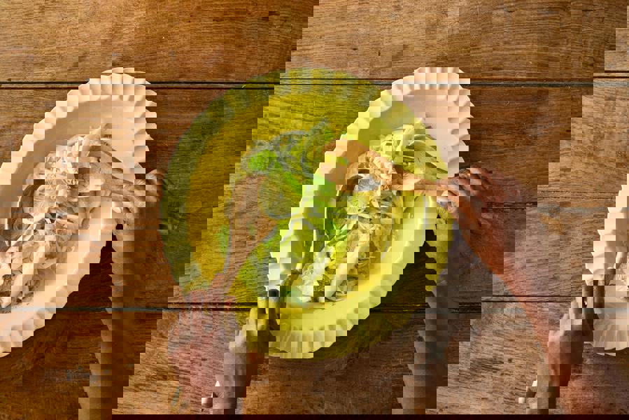 Fill the Big Love Bowl with your favourite food and bring a touch of Jamie-style to every meal. From slow-cooked pork and epic curries to generous helpings of pasta or salad, this durable green-glazed stoneware bowl makes everything look extra delicious. It's oven-safe up to 250°C and dishwasher-safe, making it perfect for both everyday use and special occasions.