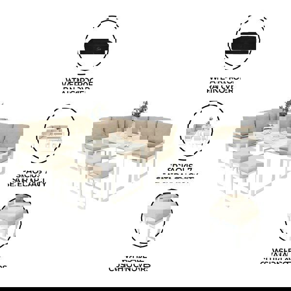 Transform your outdoor space with this elegant aluminium corner sofa set in a contemporary white finish.