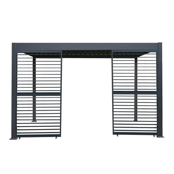 Made from powder-coated aluminium, the panel is built with outdoor use in mind and finished in a sleek anthracite grey. The adjustable louvre design lets you tilt the slats to filter sunlight and encourage ventilation, or close them for increased shelter from wind and glare. Whether you’re upgrading an existing pergola or customising a new structure, it offers a flexible solution that can be used as a single addition or as part of a more enclosed arrangement.