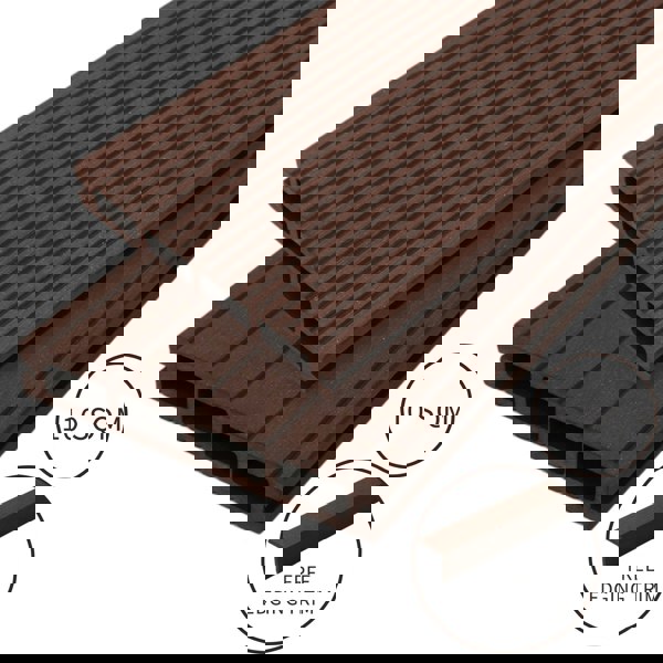 The non-slip composite decking boards are designed to last, with the added protective UV-layer it will shield your boards from the elements to look amazing all year round. Easily assemble the composite boards using our FREE fixing kit and FREE colour matched edging strips to create the perfect decking. With its extended length, we've chosen a specialized courier for this product, resulting in an estimated delivery time of around 3 working days.