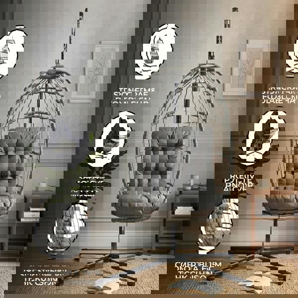 Designed for laid-back lounging indoors or out, the Jardi Rattan Hanging Egg Chair brings a contemporary touch to a patio, balcony or garden corner. Finished in grey, its cocooning shape creates an inviting spot to settle in with a book or simply enjoy a quiet moment.